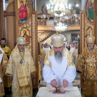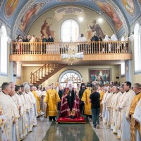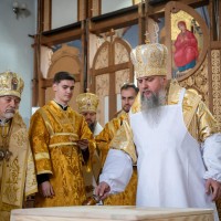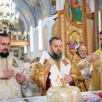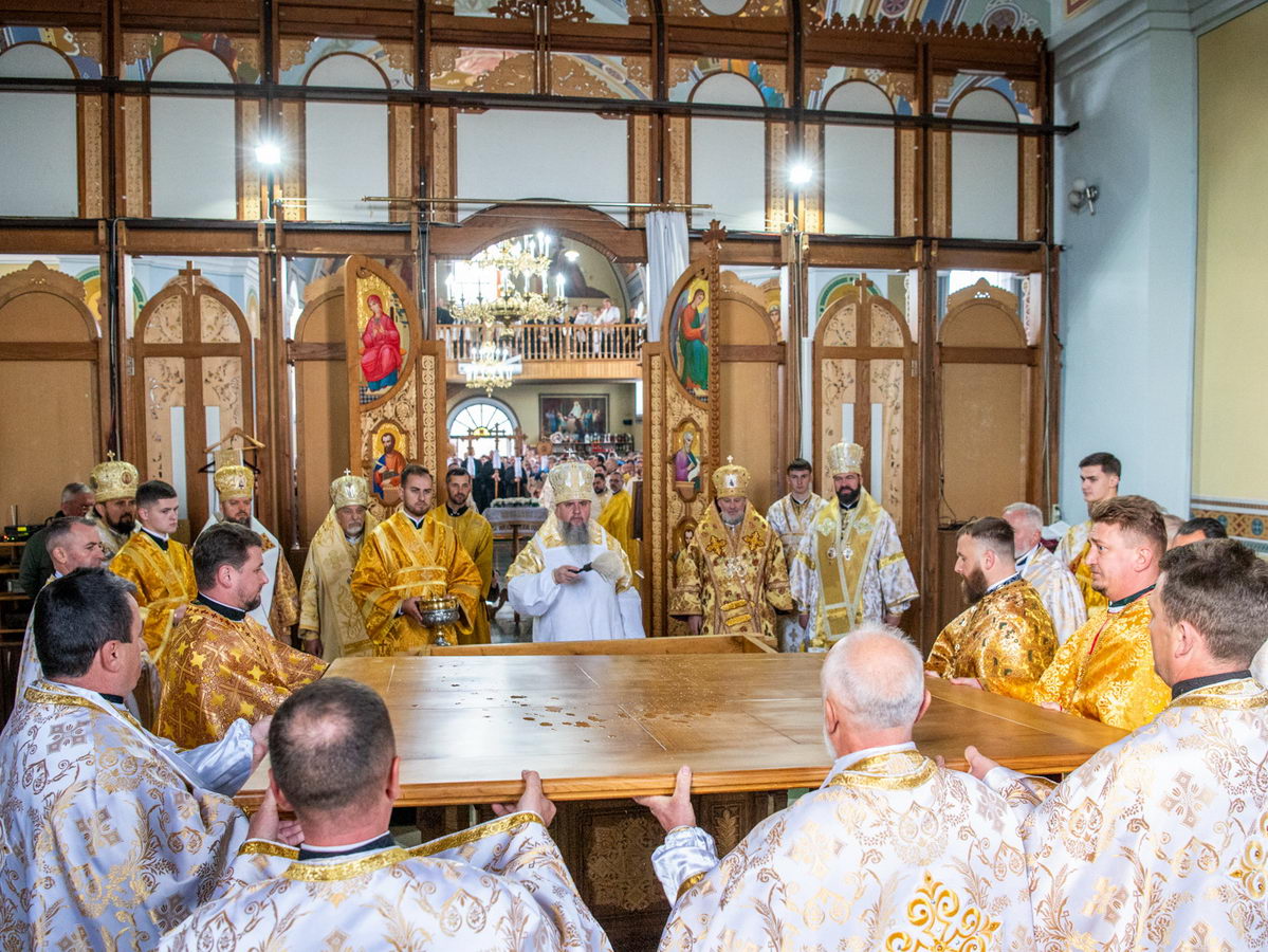 Після відпусту Блаженнійший Владика щиро привітав всіх з визначною подією – освяченням нового Престолу та вручив Архієпископу Юліану панагію, настоятелю митр.прот.Івану Близнюку – іменний хрест Предстоятеля, а громаду нагородив Благословенною грамотою.