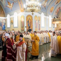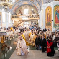 Перед початком Богослужіння Його Блаженство здійснив освячення нового Престолу та очолив відправу Божественної літургії. Після читання Євангелія Предстоятель виголосив проповідь, в якій, зокрема, наголосив на надзвичайному подвигу великого сина Українського народу – блаженної пам’яті Святійшого Патріарха Володимира (Романюка), 100-літтю народження та 30-літтю упокоєння якого присвячено 2025 рік на Прикарпатті.