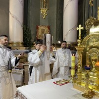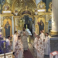 Після Літургії Його Високопреосвященство виголосив проповідь та привітав всіх з великим святом. Також владика Андрій привітав митр. прот. Василя Дем'яника, ієрея Василя Бегара та диякона Василя Гуменюка з Днем небесного покровителя - святителя Василія ВелБогослужіння заершилося уставним многоліттям та фото на згадку.