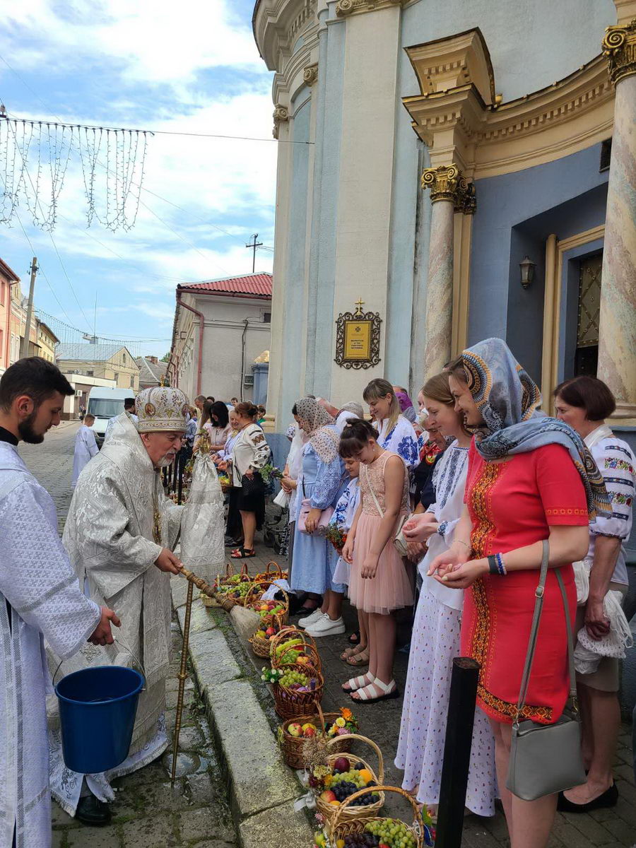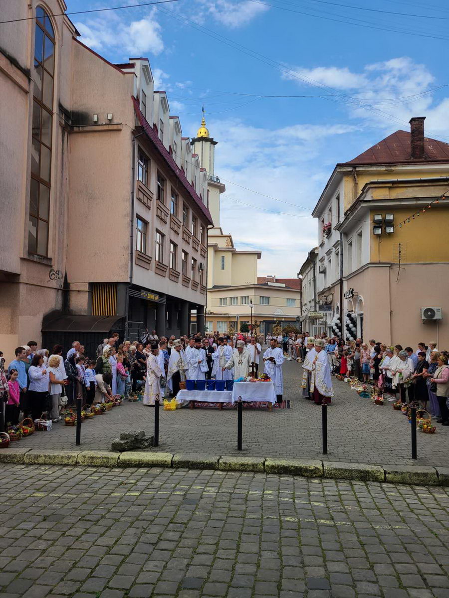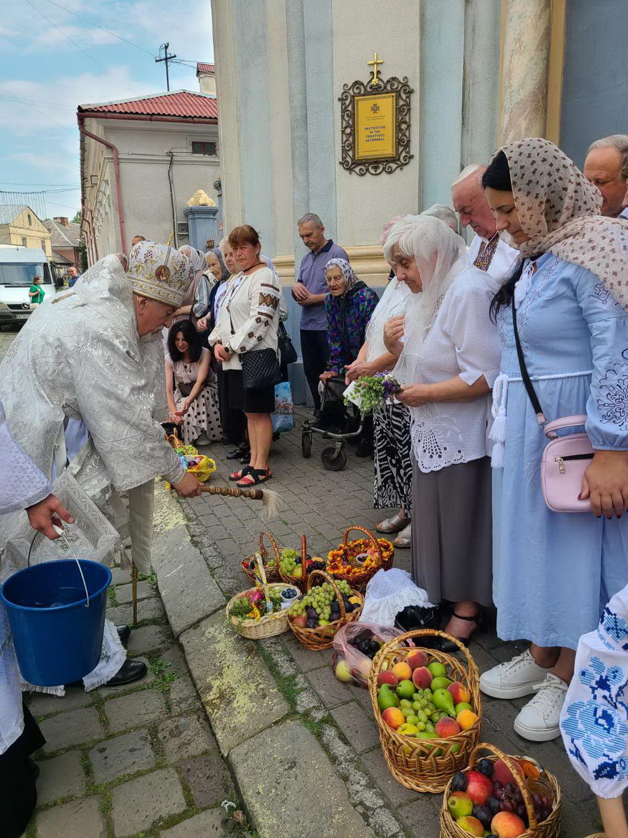 По завершенні Літургії процесія вірних вийшла на передсоборову площу Патріарха Мстислава де було звершено чин освячення та благословення плодів. Митрополит Андрій окропив приношення вірян освяченою водою.