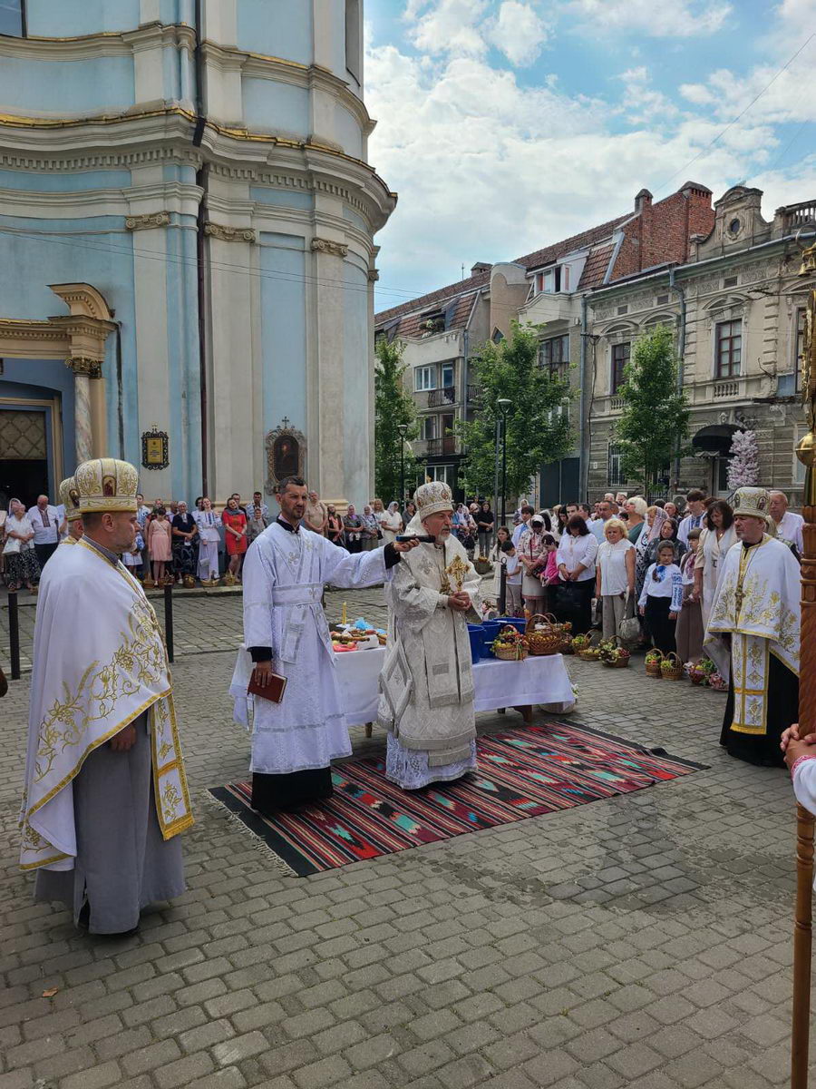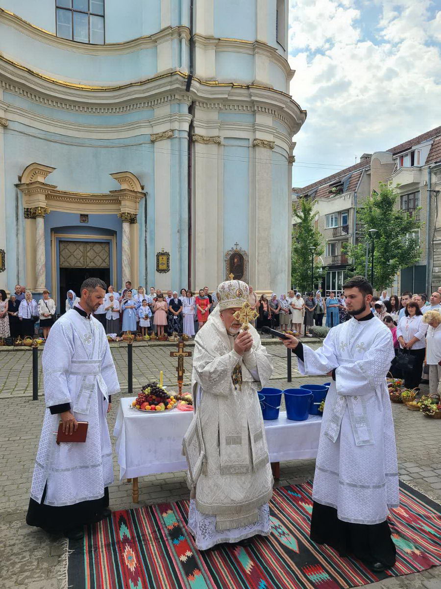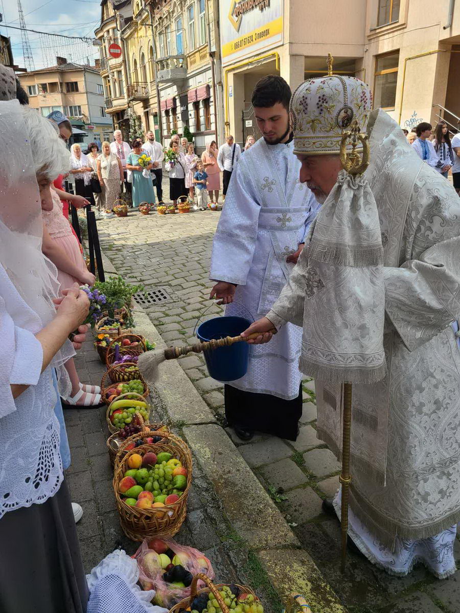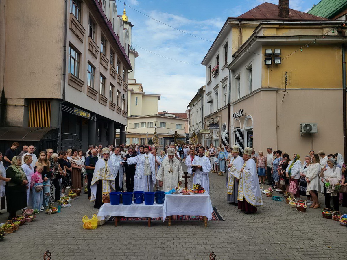 По завершенні Літургії процесія вірних вийшла на передсоборову площу Патріарха Мстислава де було звершено чин освячення та благословення плодів. Митрополит Андрій окропив приношення вірян освяченою водою.