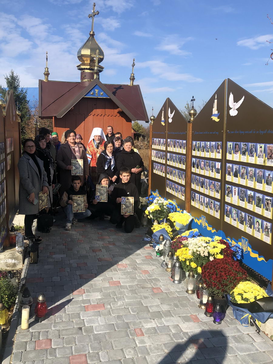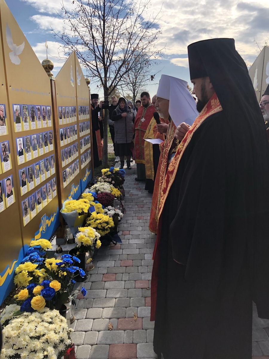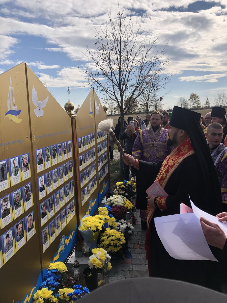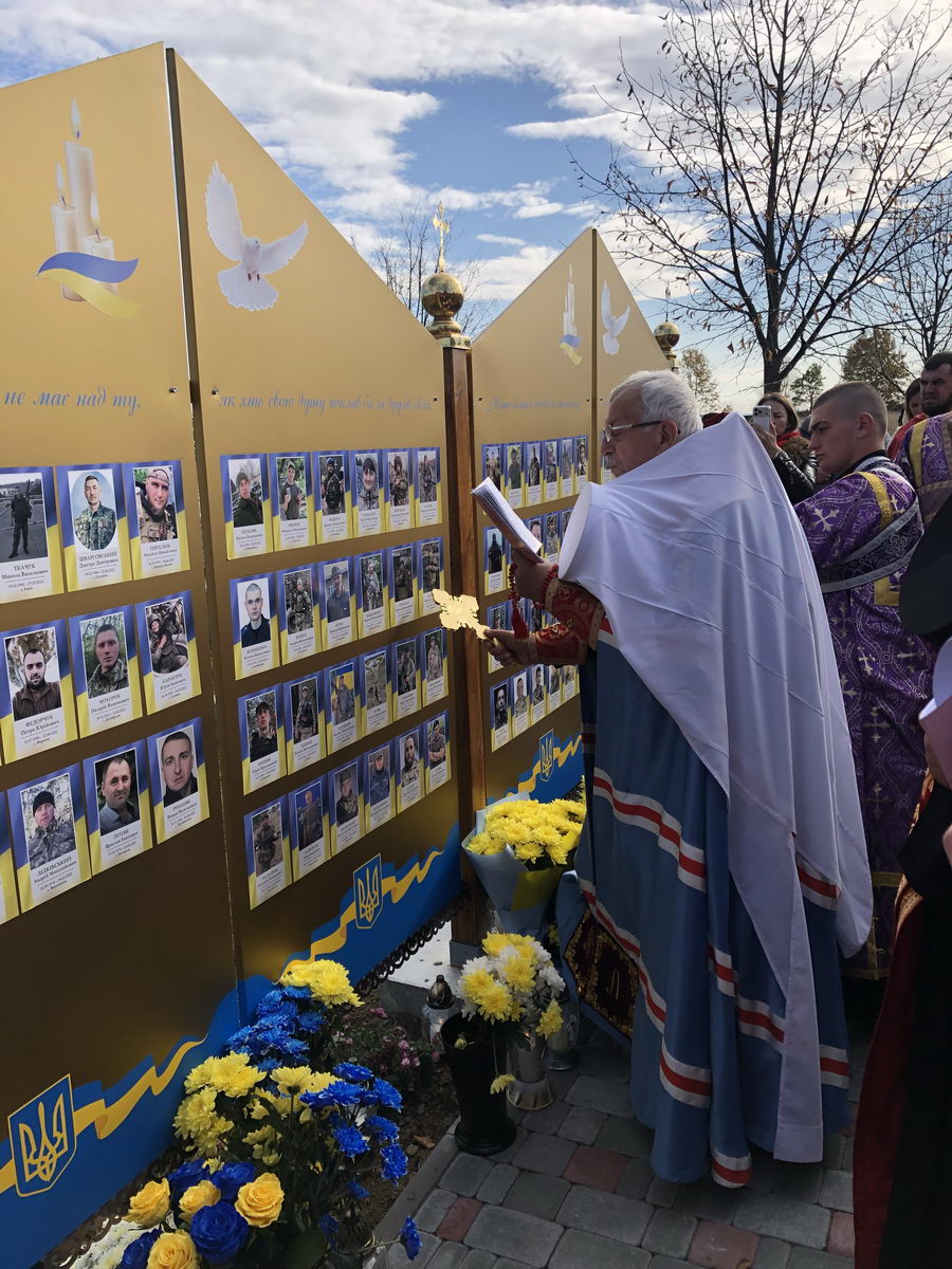 Потім процесія вірних вирушила до Стіни пам’яті, де було освячено нещодавно встановлену частину Стіни, на якій розміщено фотографії загиблих воїнів з Верховинського району. На завершення освячення рідним загиблих Героїв було вручено пам’ятки. По завершенні освячення владика Андрій очолив чин панахиди за полеглими захисниками, після відправи якої від органів влади до присутніх звернувся голова РВА Василь Бровчук, представники громадськості та ті, хто долучилися до встановлення Стіни пам’яті.