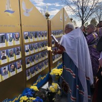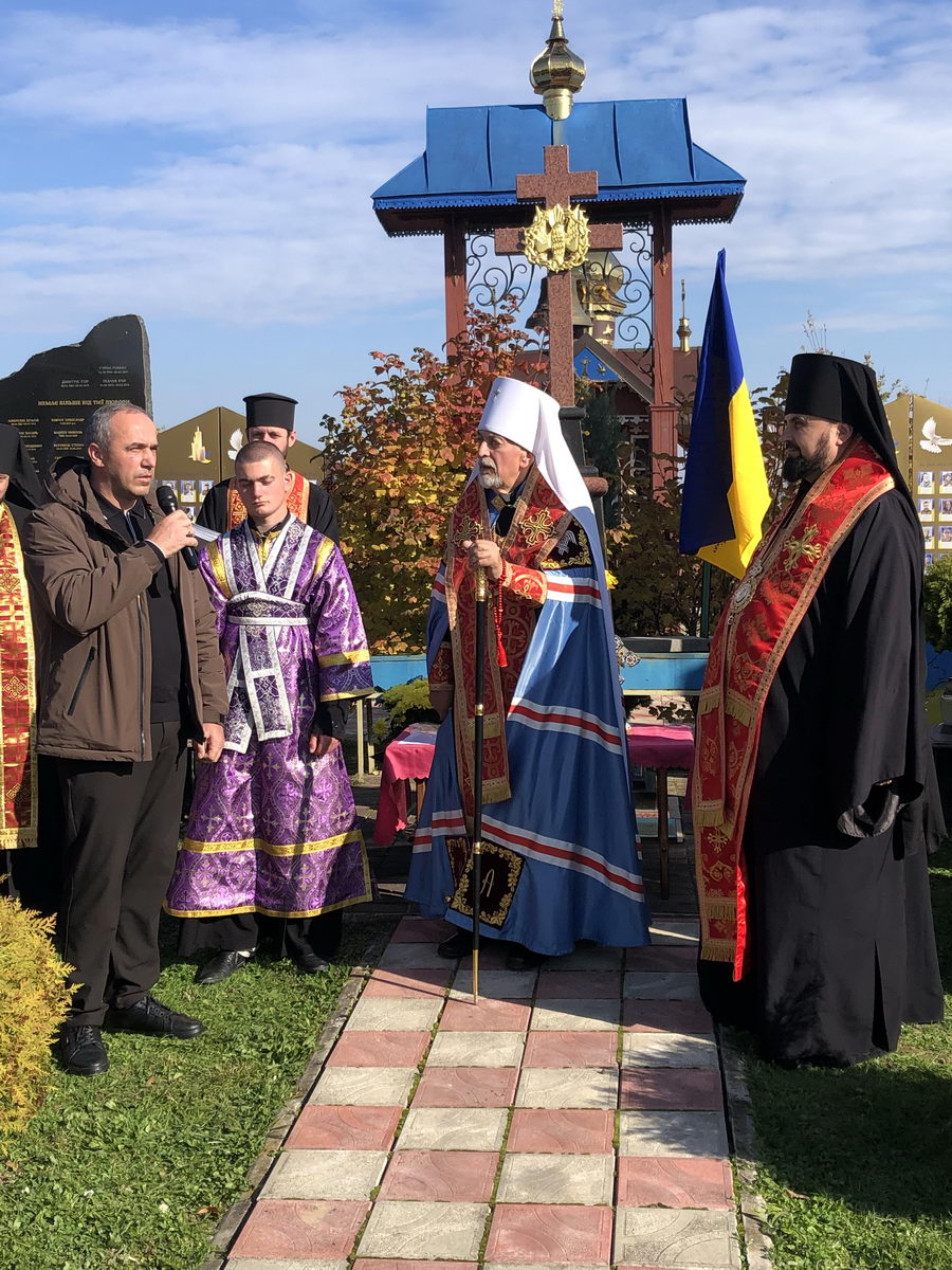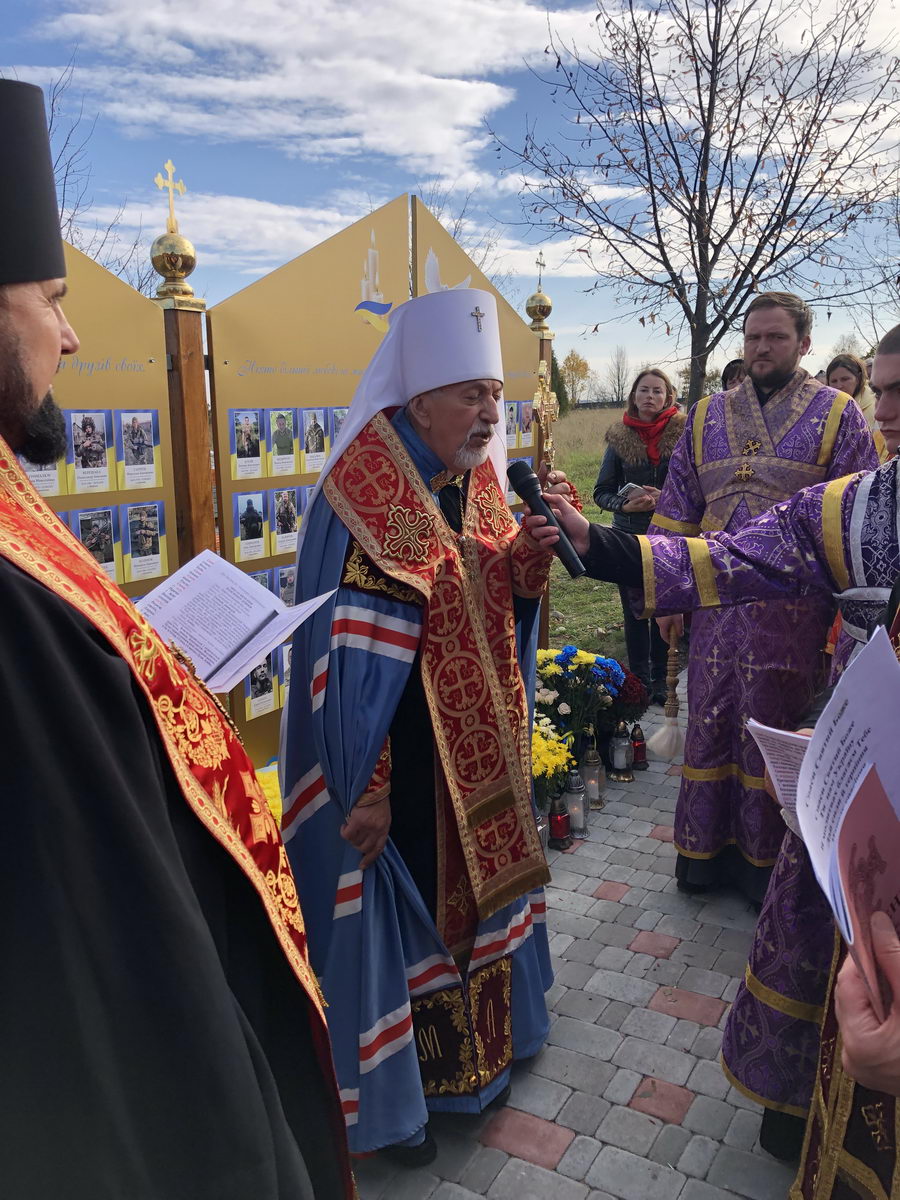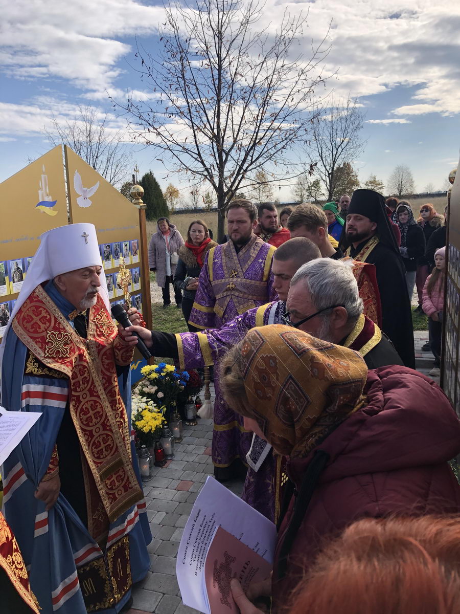 Потім процесія вірних вирушила до Стіни пам’яті, де було освячено нещодавно встановлену частину Стіни, на якій розміщено фотографії загиблих воїнів з Верховинського району. На завершення освячення рідним загиблих Героїв було вручено пам’ятки. По завершенні освячення владика Андрій очолив чин панахиди за полеглими захисниками, після відправи якої від органів влади до присутніх звернувся голова РВА Василь Бровчук, представники громадськості та ті, хто долучилися до встановлення Стіни пам’яті.