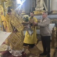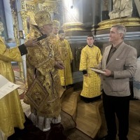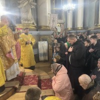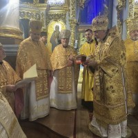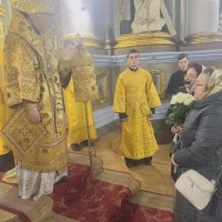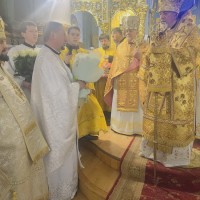 В самий день свята, у неділю, перед Божественною літургією у притворі Архіпастиря зустрів ключар собору митр. прот. Богдан Романюк, який запросив Владику піднести молитви до Господа та подякувати за всі Його благодіяння.