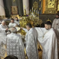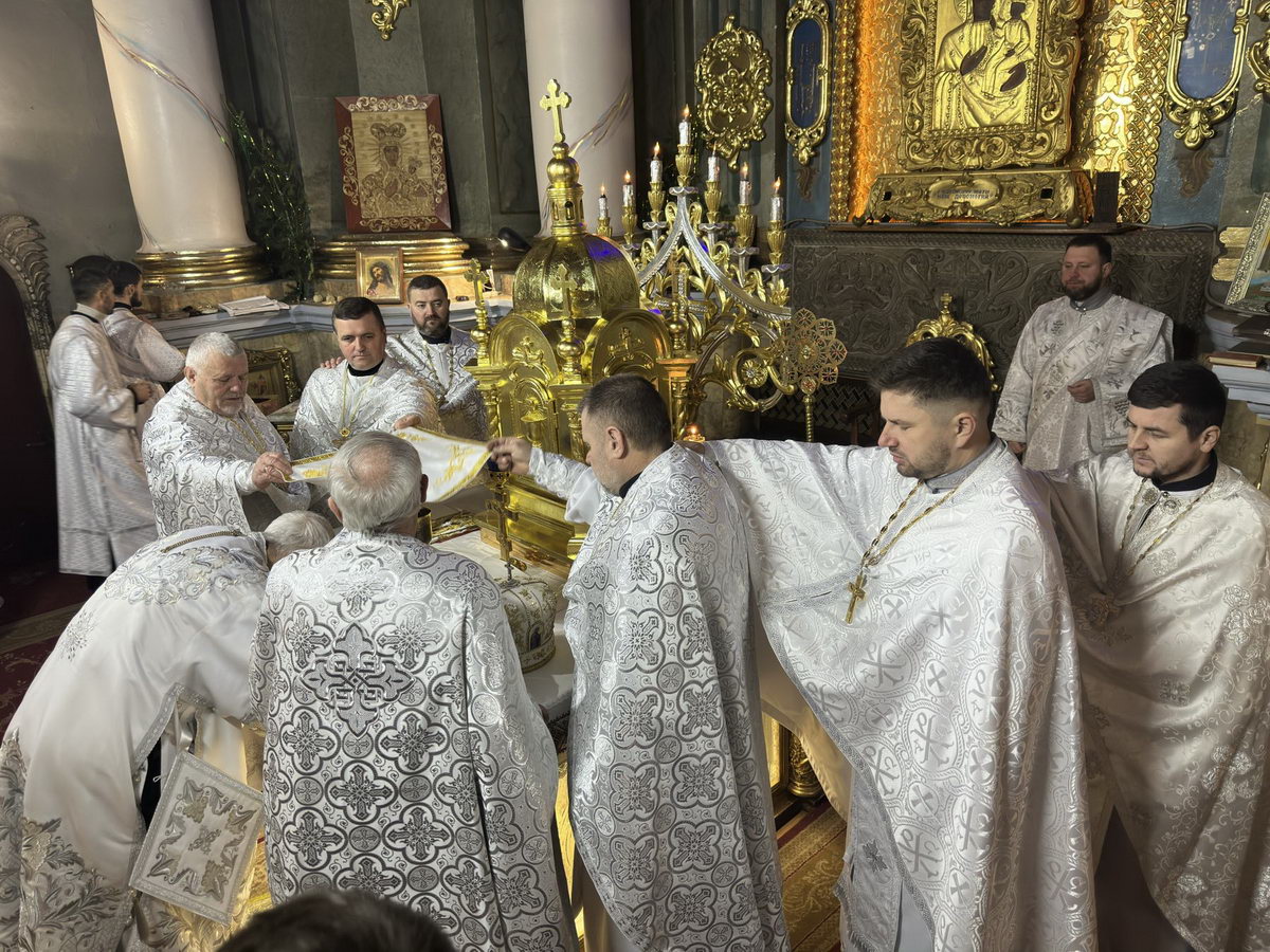 Митрополитові Андрію співслужили клірики собору та запрошене духовенство.