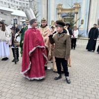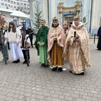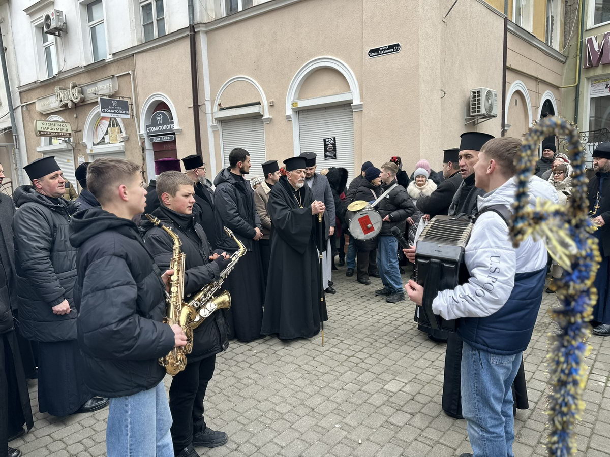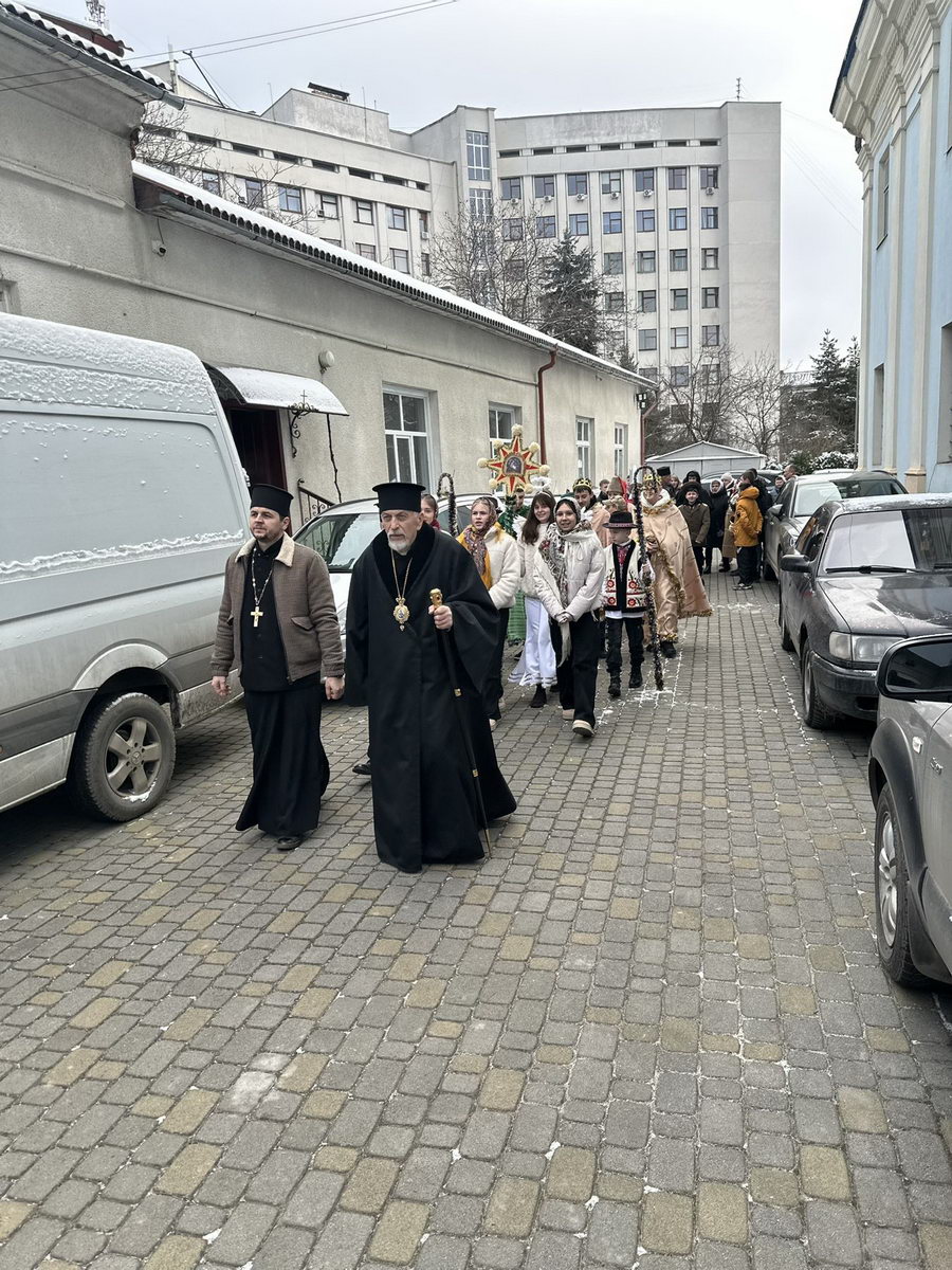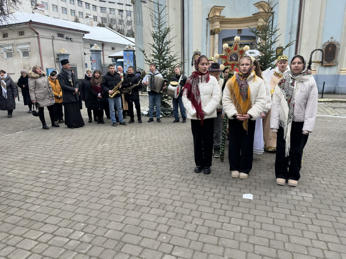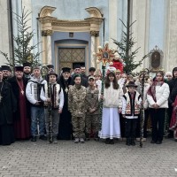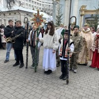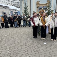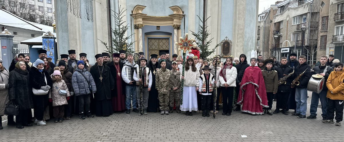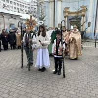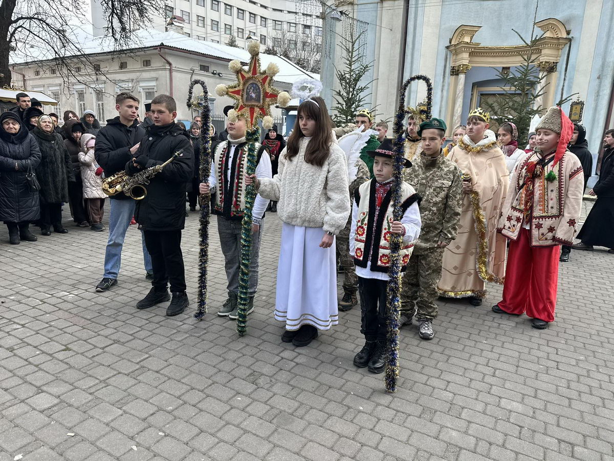 Після Богослужіння процесія вірних вийшли на передсоборову площу імені Патріарха Мстислава, де стараннями дітей та вчителів села Гринівці Тлумацького деканату було проведено Різдвяний вертеп.