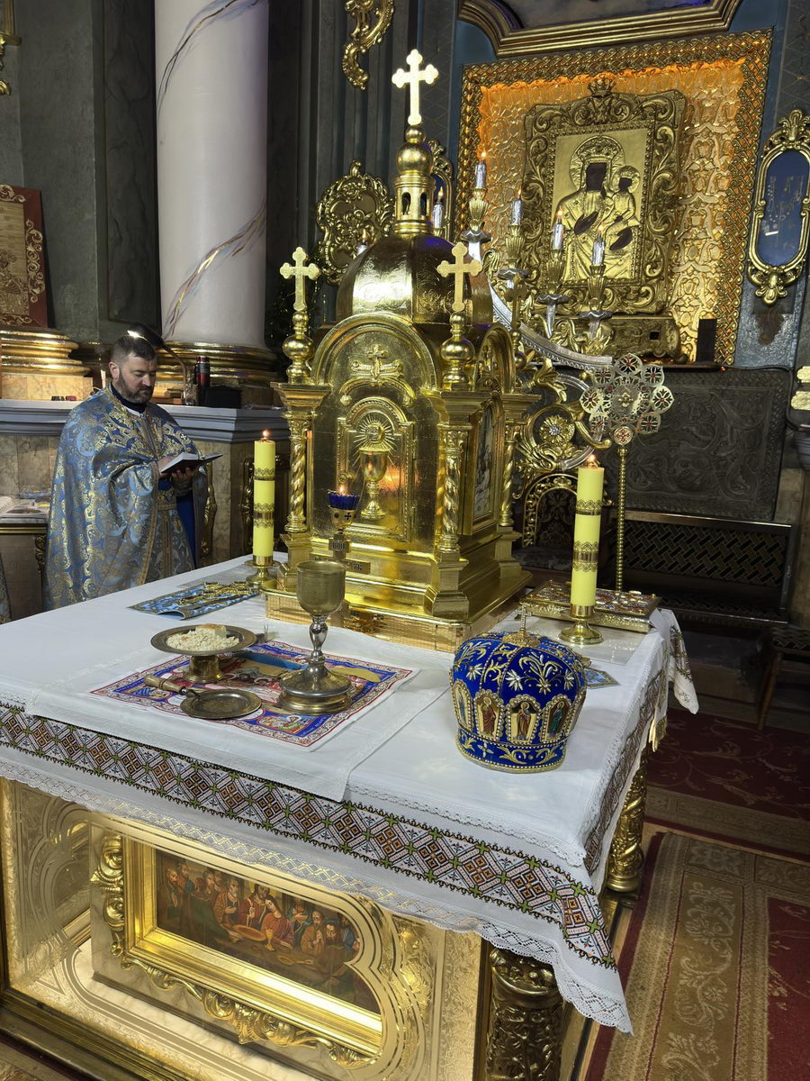 Після потрійної єктенії було вознесено молитву до Пресвятої Богородиці – «Царице моя, Преблагая». Також, під час відправи лунали молитовні прохання за воїнів, які захищають Україну, за владу і наш народ.