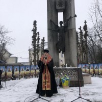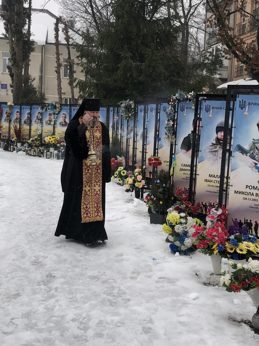 Під час панахиди також молились за упокій українських героїв новітньої доби, які віддали своє життя за незалежність України. Після відправи панахиди Владика Андрій виголосив духовно-патріотичне слово.