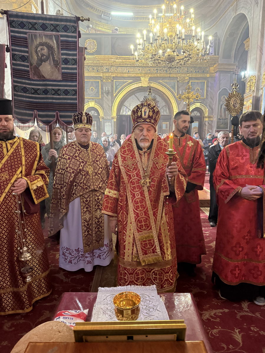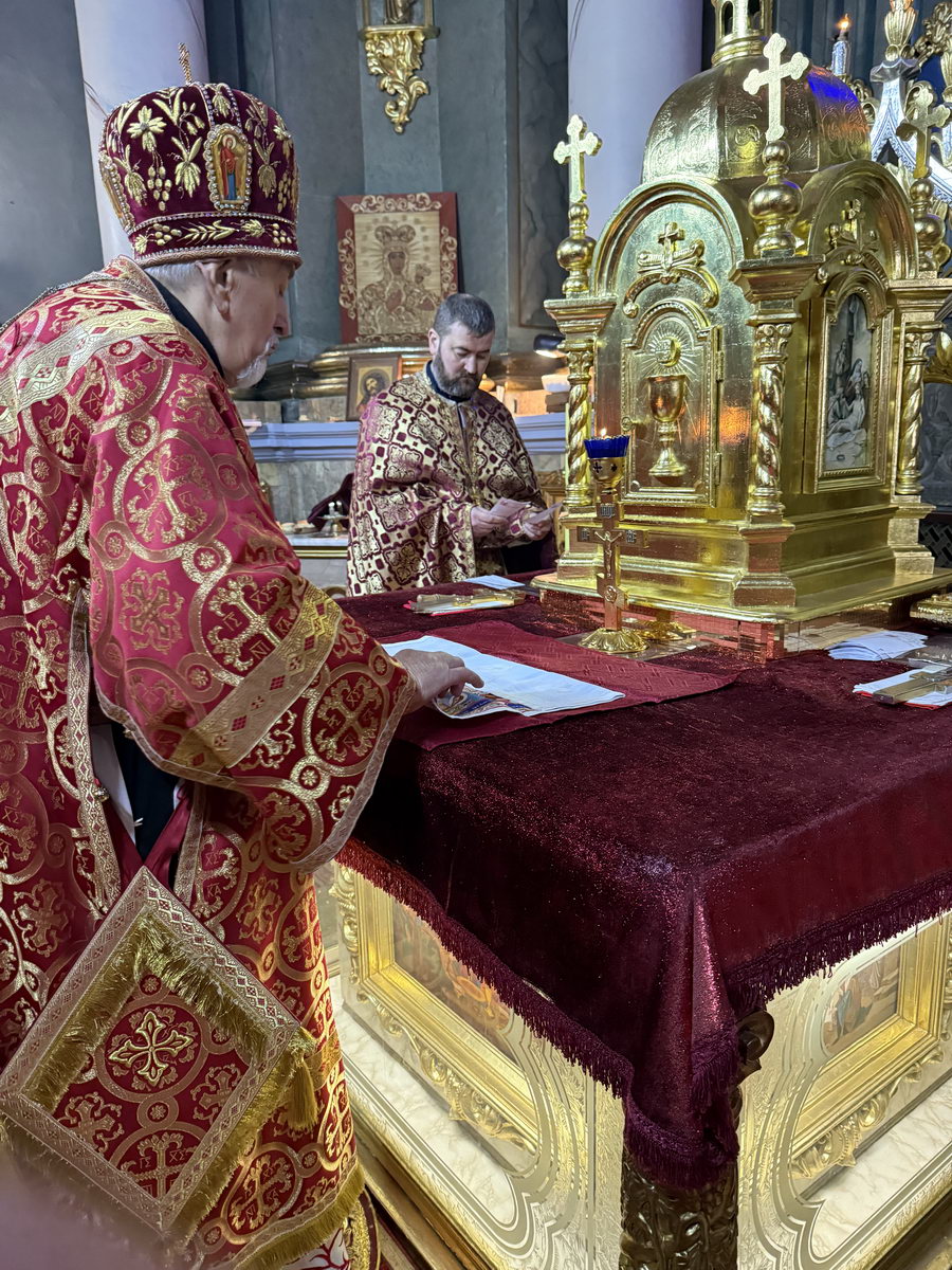 Його Високопреосвященству співслужили клірики собору та запрошене духовенство.