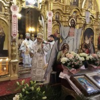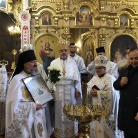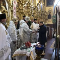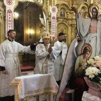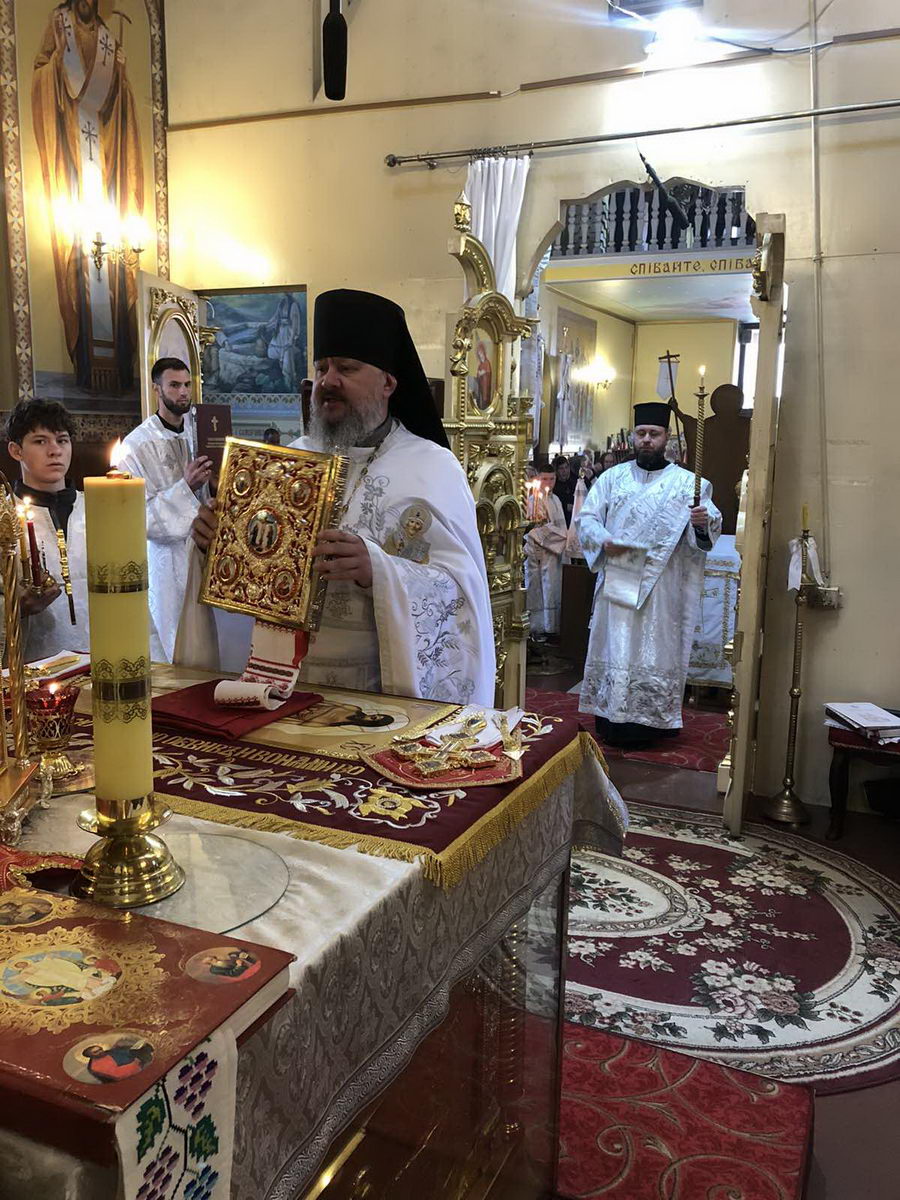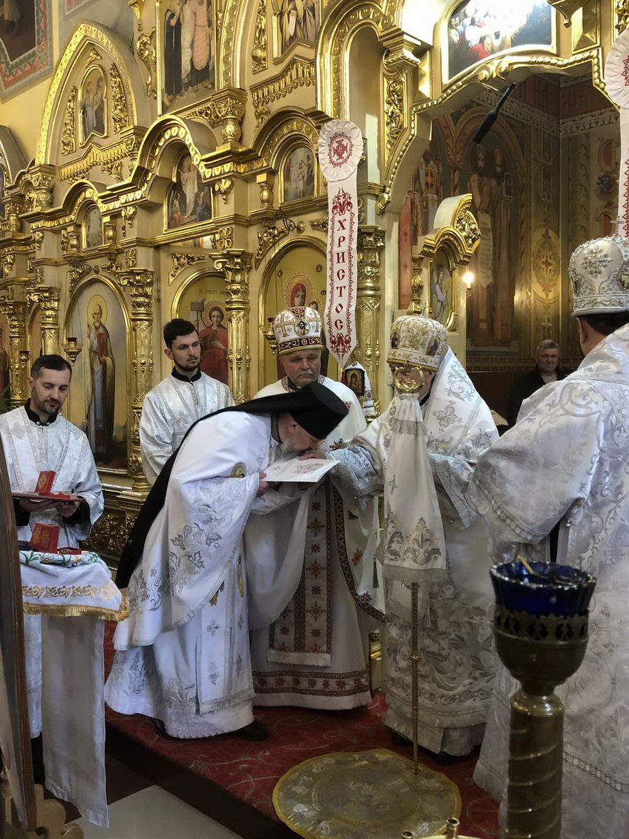 На малому вході митрополит Андрій з благословення Предстоятеля Православної Церкви України Блаженнійшого Митрополита Епіфанія з нагоди Пасхи Христової та за понесені труди настоятеля храму ієромонаха Стефана (Козака) возвів у сан ігумена. У цей день усі присутні у храмі возносили свої молитовні прохання про заступництво над воїнами-захисниками України в часі повномасштабної війни. По завершенні Богослужіння Митрополит Андрій щиро подякував усім присутнім за щирі молитви та привітав настоятеля ігумена Стефана з високою нагородою, а митр. прот. Миколу Хрептака – з 55-літтям з Дня народження, нагородивши його єпархіальною відзнакою «Свт. Миколая». Також вітальне слово мовив міський голова м.Івано-Франківська п. Руслан Марцінків, щиро привітавши присутніх.