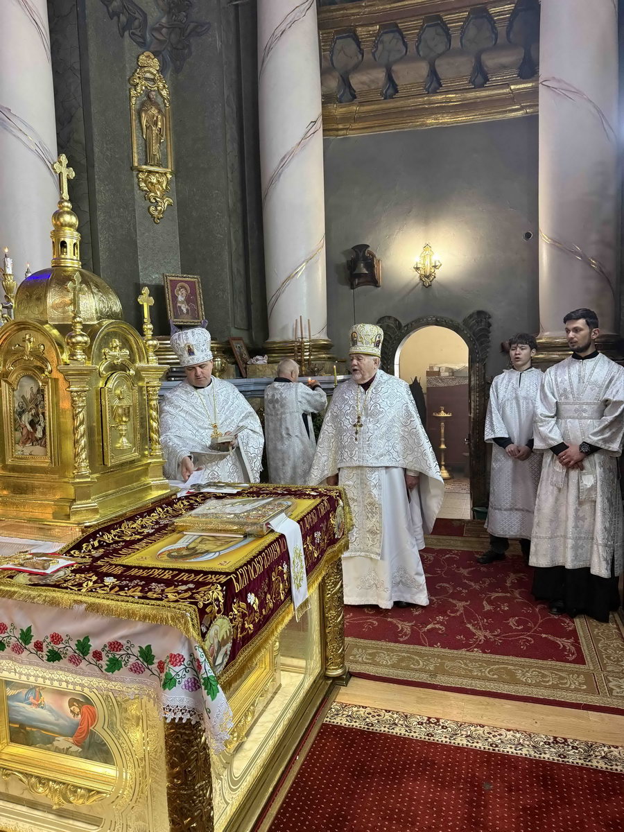 Його Високопреосвященству співслужили клірики собору та запрошене духовенство.
